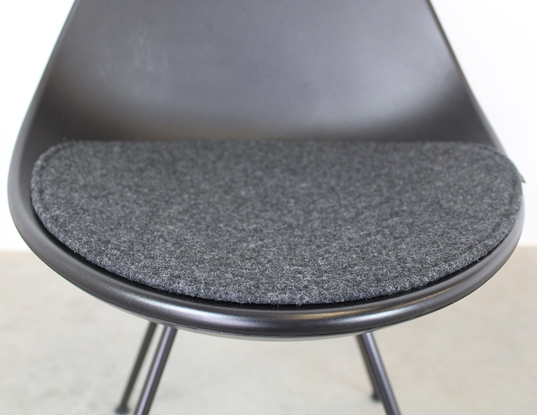 Fritz Hansen Drop chair 3110 designed by Arne Jacobsen. Plastic black, legs black, cushion grey. Height 88,5cm, width 45,5cm, depth 54,5cm, seat 46cm. The chair is in good condition.
