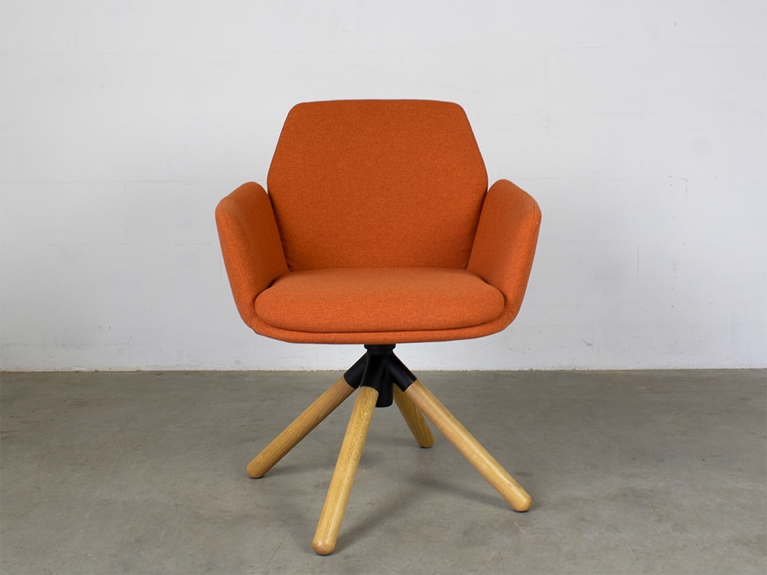 Haworth Poppy chair set 4. Design Patricia Urquiola. legs oak, aluminum black, fabric orange. width 66cm, H 84cm, D 56cm, seat 43cm. good condition.